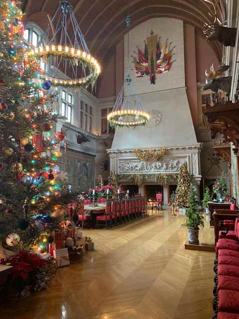 Over 100 hand-decorated Christmas trees, including a 35-foot Fraser fir in the Banquet Hall. 25,000+ ornaments, 100,000+ lights, and 1,960 live poinsettias throughout the estate. Seasonal décor inspired by mountain beauty, Ming Dynasty art, and Victorian traditions.