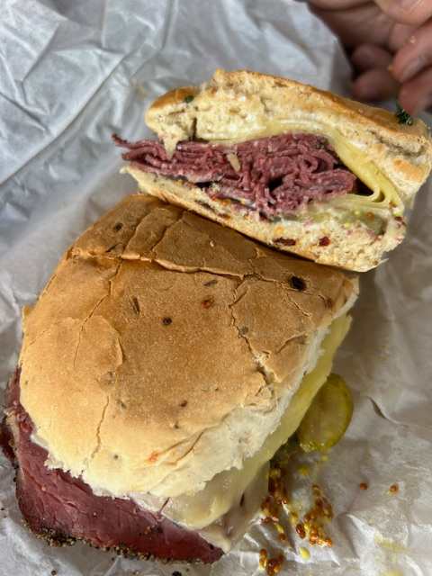 While the boys were using the Wifi, Joy tried for the final time to find Alex a pastrami sandwich. Lo and behold, she found a very local deli on an actual corner called The Pig and Heifer. Their logo said “Can’t stay, take it away” and was quite appropriate. Seating is absolutely scarce here, but we were lucky enough to find two tiny tables in the front outside. Meanwhile, plenty of people were taking the logo to heart. They do great business!
