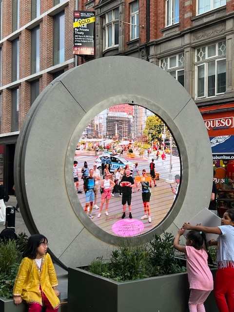 On the walk back to the hotel, we were surprised by the Dublin Portal. You can communicate in real time to New York. The younger crowd was into it!