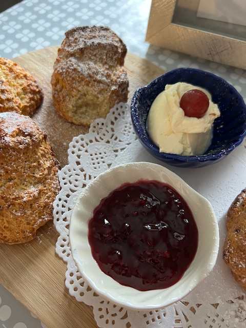 We were anticipating waking up to Corona’s homemade scones. Happy news! They were everything (and more) that we hoped they would be. There were plain and white chocolate raspberry scones along with jam and clotted cream. Divine!