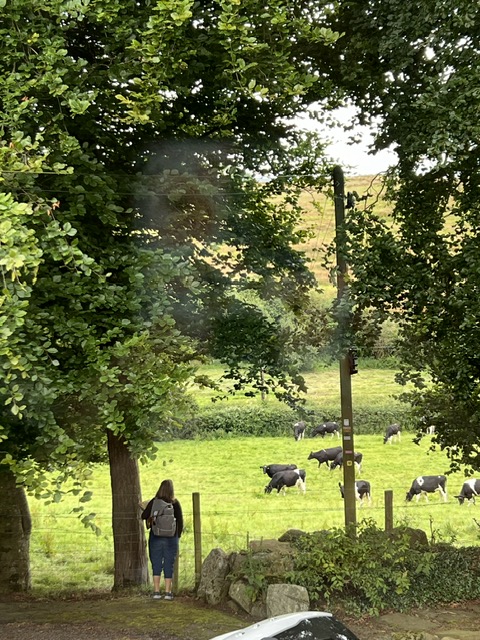 We stayed at a farmhouse for the first 2 nights of our road trip in NI. The drive was a bit scary with the tight roads, but we did arrive safely :) The front yard was full of cows, so you know the first thing Joy did was go to the fence to chat with them!