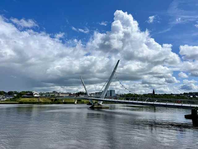 The bridge spans 400 years of a physical and political divide in Northern Ireland, symbolizing a handshake of peace across the River Foyle.